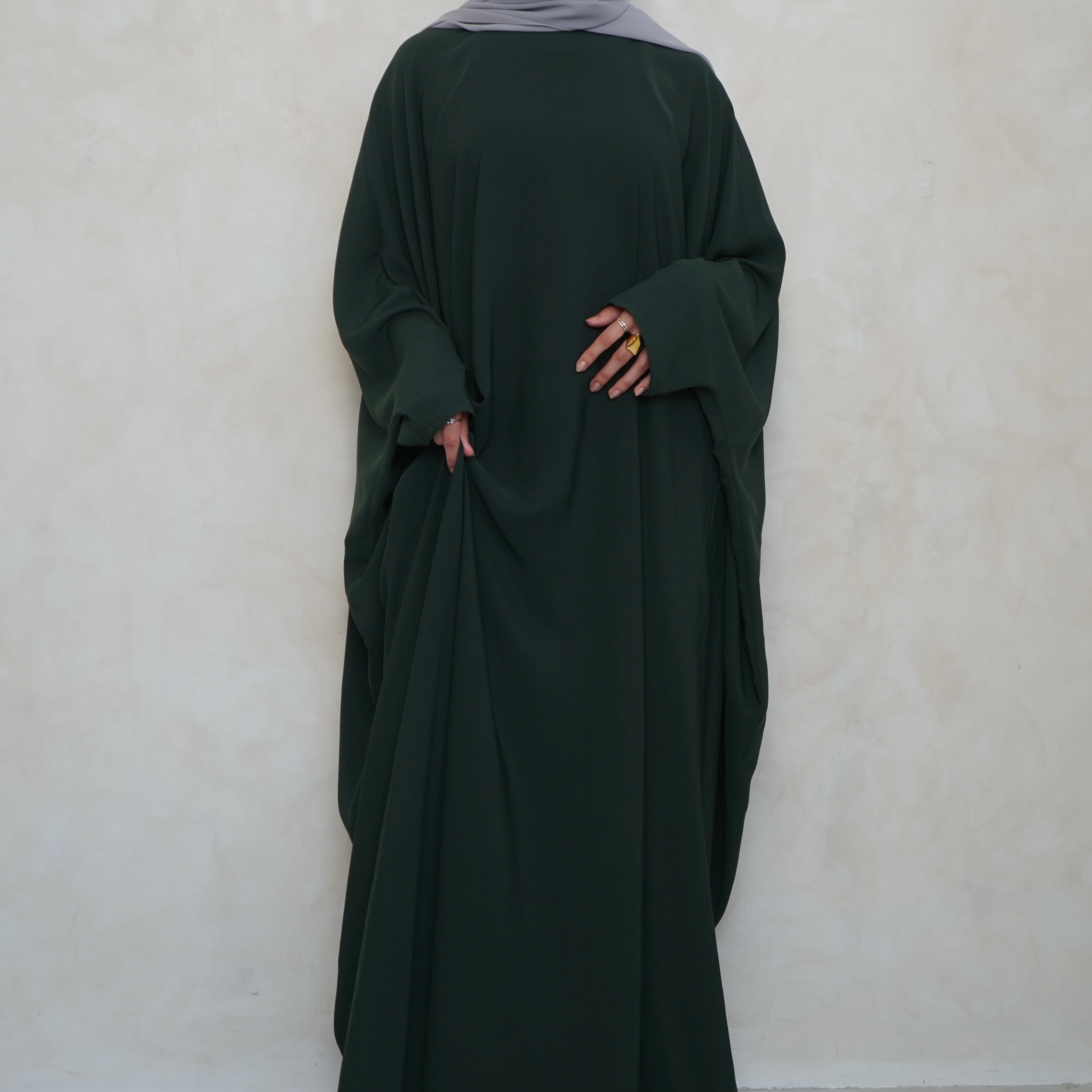 Bottle Green Batwing Breathable Jilbaya - a perfect fusion of contemporary style and modest comfort. With its unique flowy batwing design, not only adds a touch of sophistication but also ensures breathability, making it an ideal choice for any occasion.
