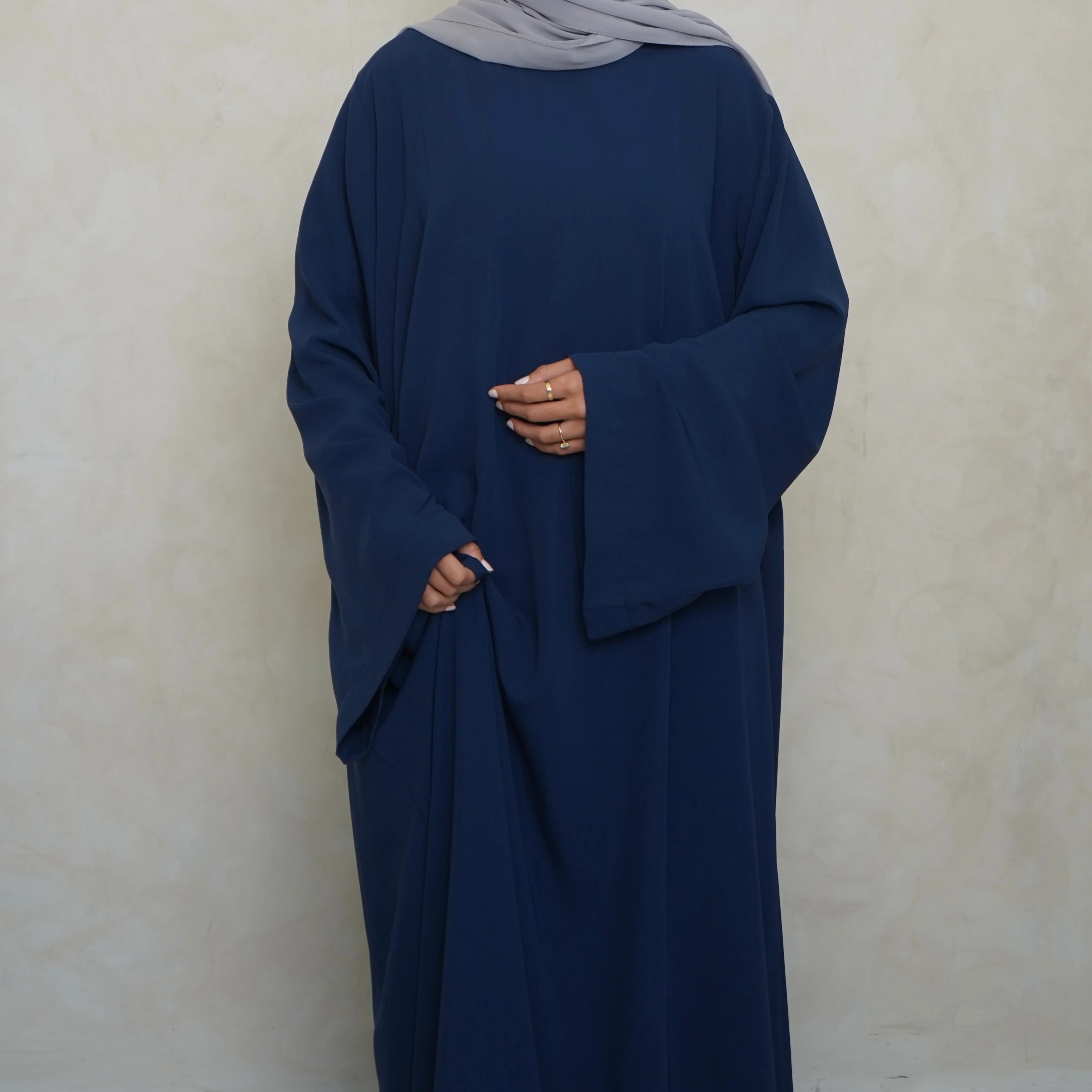 Elegance meets versatility with Mary's Closed Abaya in Navy Blue, offering a modest fit that transcends occasions – a timeless essential for your sophisticated wardrobe.
